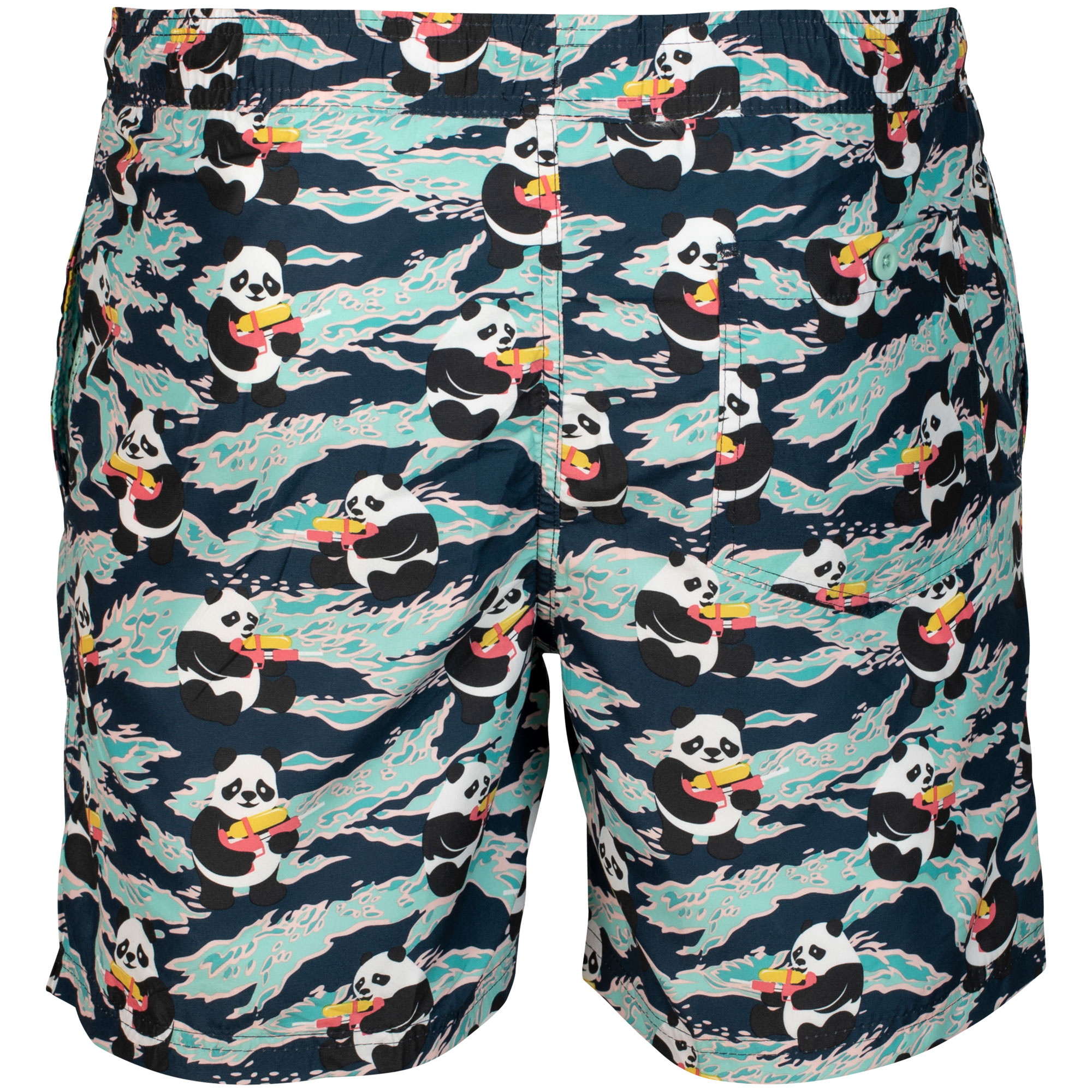 Die „Holiday“ Badehose in Mint / Blau mit coolem Panda ist schnelltrocknend und bietet UV50+ Schutz, mit zwei Seitentaschen und einer Gesäßtasche
