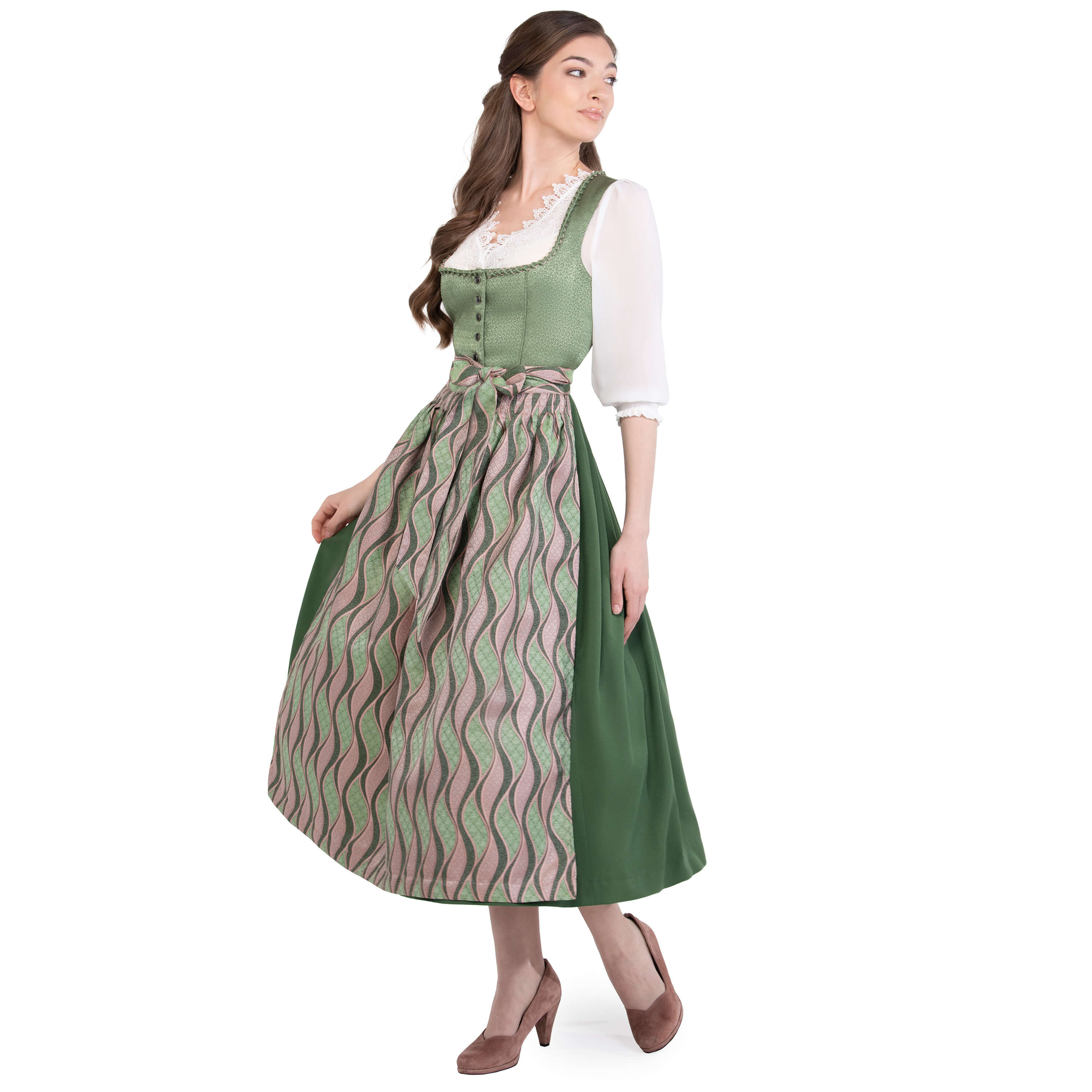 Dirndl Gianna Grün-Rosa – verspielte Eleganz trifft modernen Komfort