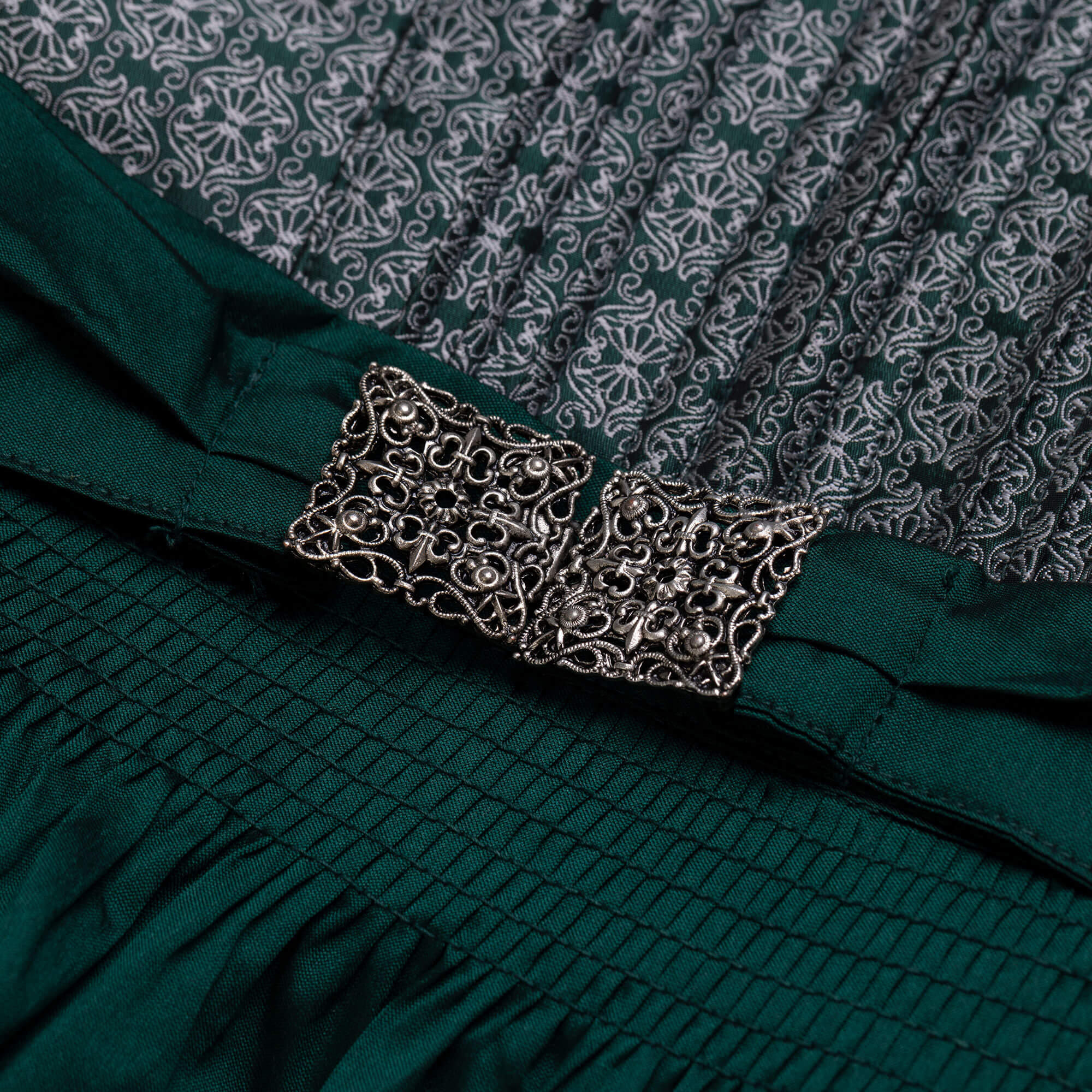 Klassisches Dirndl in Dunkelgrün mit elegantem Muster und Zierschnalle