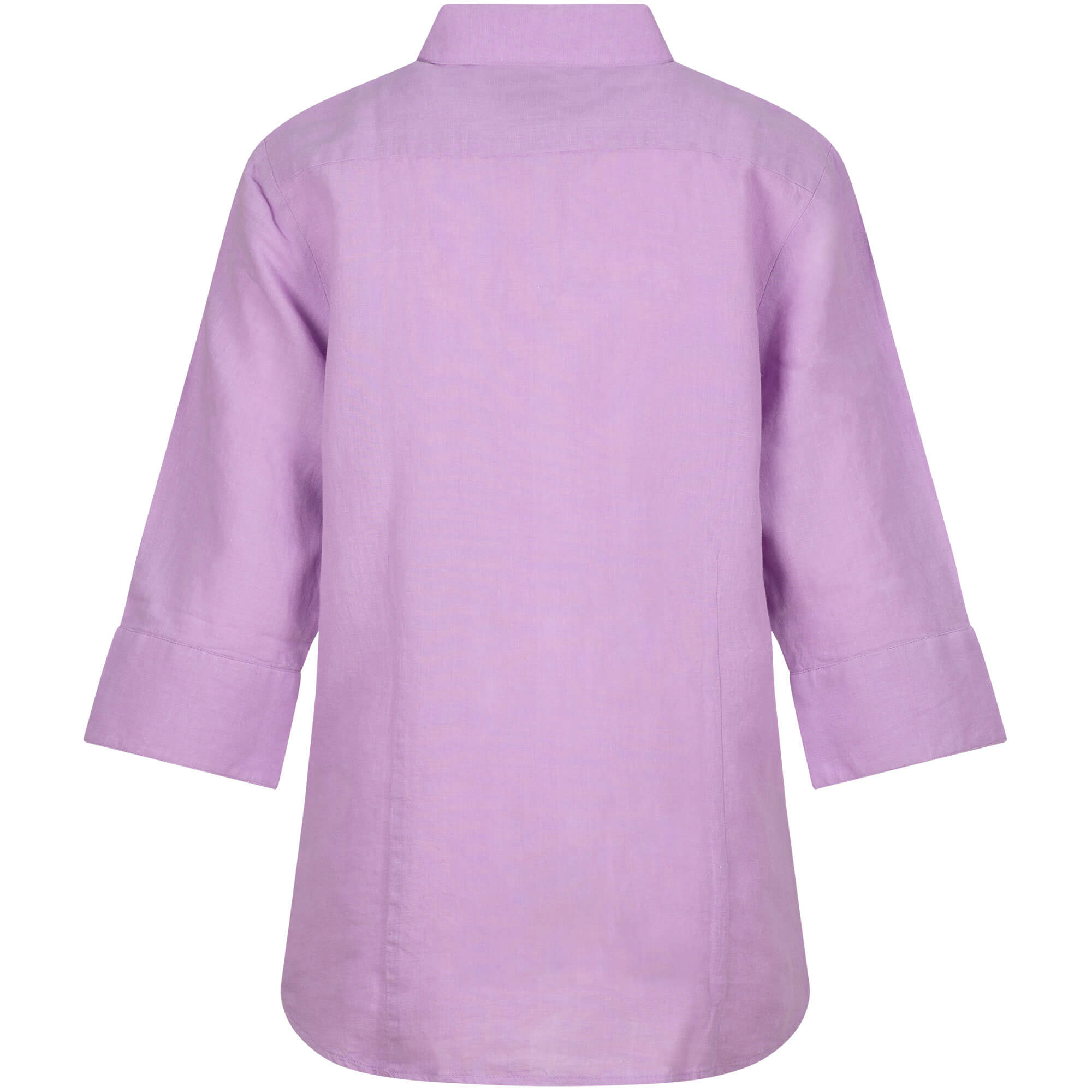 Stilvolle Leinenbluse in Lila, mit dreiviertel Arm