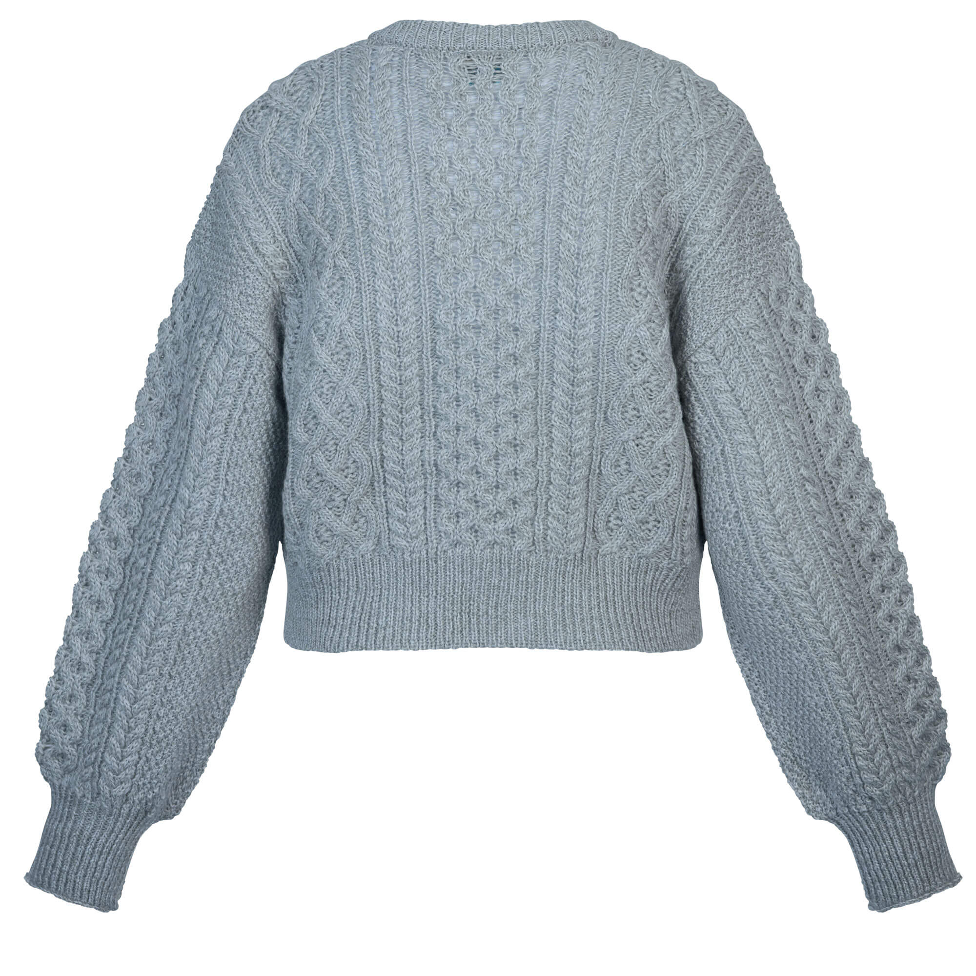 Die Damen-Strickjacke „Alma“ in der Farbe Hellblau überzeugt mit ihrem modischen Design und hochwertiger Verarbeitung. Der dezent blaue Farbton bringt Frische in jede Garderobe. Das klassische Zopfmuster verleiht der Jacke eine zeitlose Optik, während die voluminösen Ballonärmel mit Strukturstrick einen modernen Akzent setzen. Die Strickjacke ist locker geschnitten und schließt mit einer durchgehenden Knopfleiste mit eleganten schwarzen Knöpfen. Breite Rippbündchen an Saum und Ärmeln sorgen für eine schöne Passform und angenehmen Tragekomfort.
