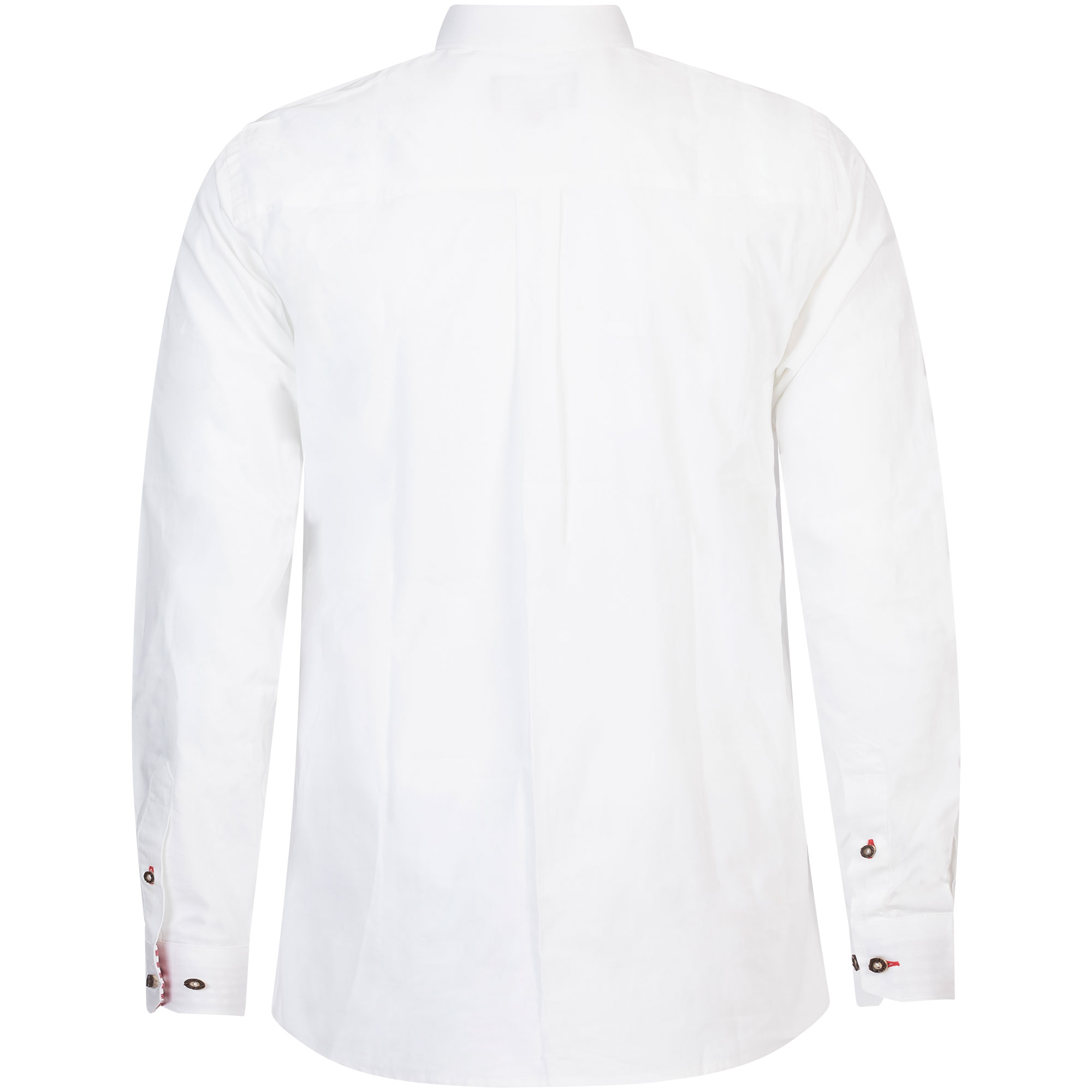 Dieses elegante Herren-Langarmhemd in klassischem Weiß ist eine stilvolle Hommage an die österreichische Region Kärnten. Es besticht durch seine hochwertigen Stickereien auf der Vorderseite: Ein großes rotes „K“, darunter der vertikal verlaufende Schriftzug „Kärnten“ sowie ein goldener Löwe als traditionsreiches Symbol der Region. Auch auf der linken Manschette findet sich ein dezent eingestickter Löwe, der das Design harmonisch abrundet. Die Knöpfe sind in rustikaler Optik gehalten und unterstreichen den traditionellen Charakter des Hemdes. Ein besonderes Detail ist der rot-weiß karierte Stoff im Inneren des Kragens, der einen charmanten, trachtigen Akzent setzt. Mit seinem klassischen Schnitt und angenehmem Tragegefühl eignet sich das Hemd perfekt für festliche Anlässe, Volksfeste oder als stilvolles Statement im Alltag.