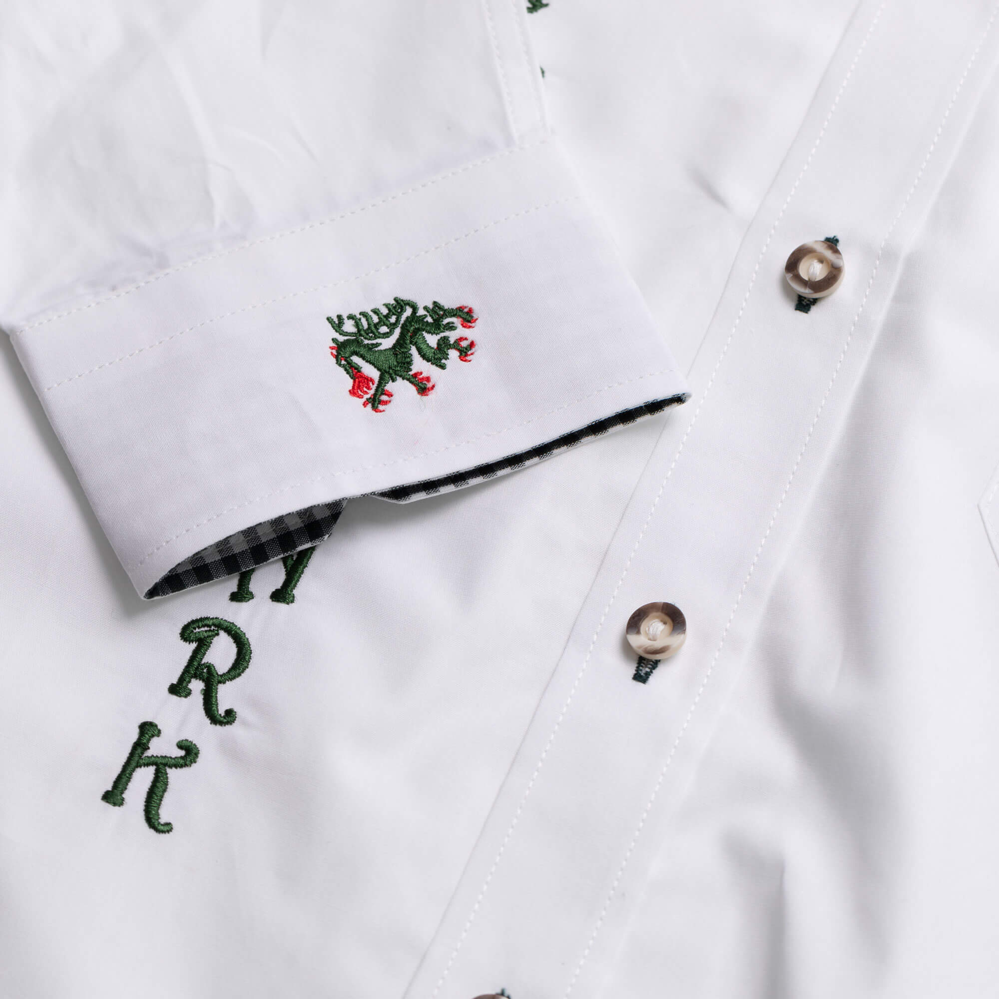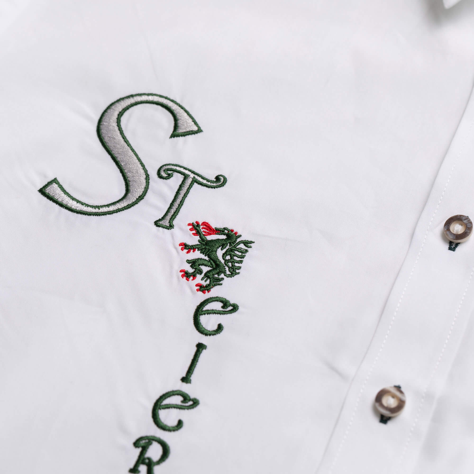 Langärmeliges Herren-Hemd „Steiermark“ in Weiß mit "Steiermark" Schriftzug vertikal gestickt