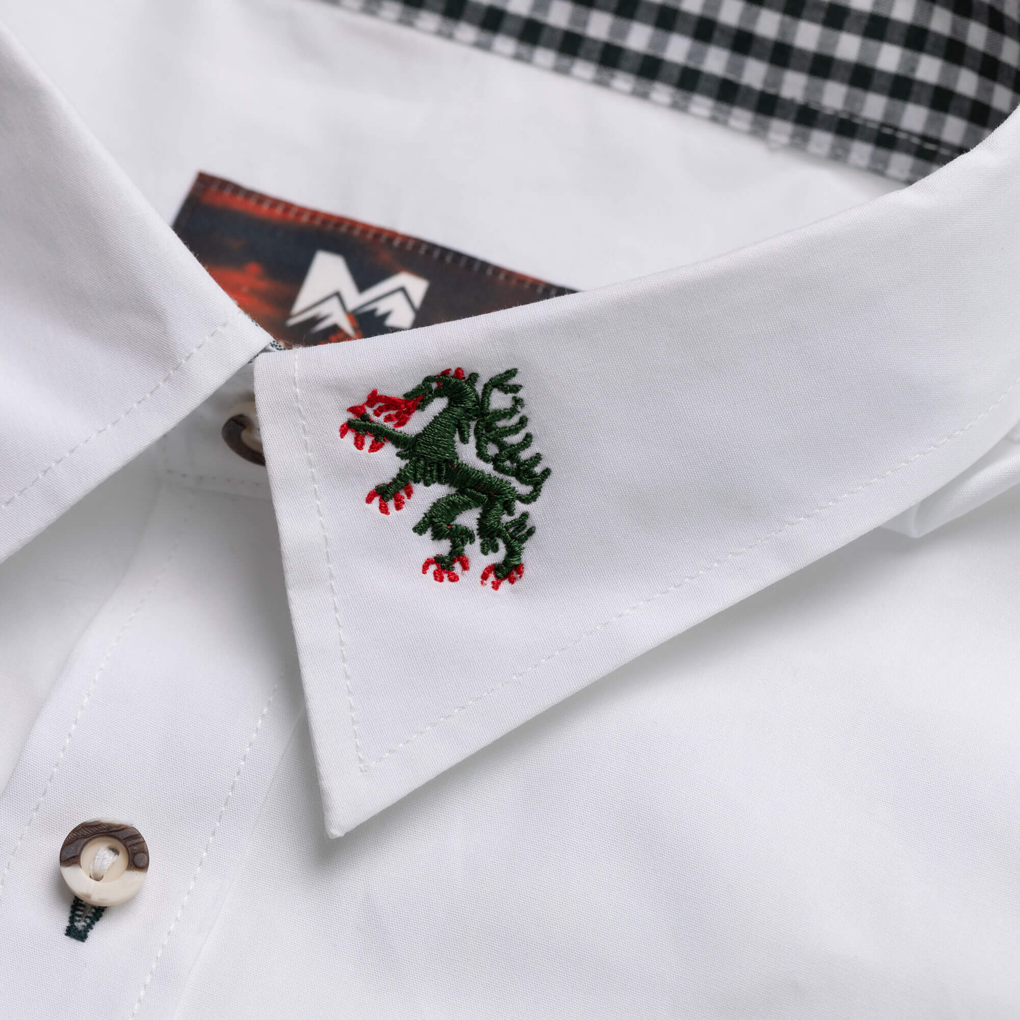 Besonderer Blickfang ist die aufwendig gestickte Darstellung des steirischen Panthers am Kragen sowie an der Manschette, die dem Hemd einen individuellen Charakter verleiht.