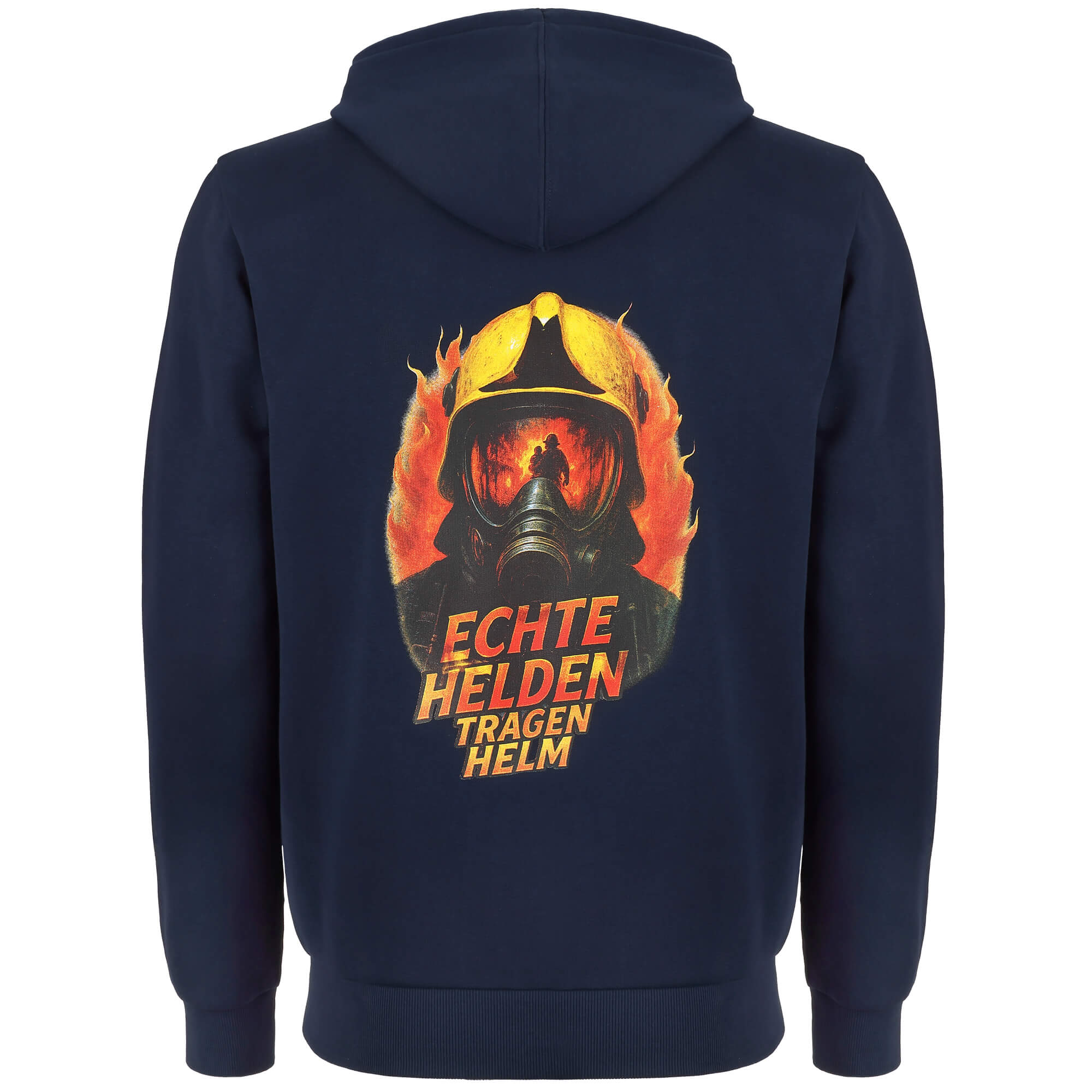 Herren Hoodie Feuerwehr „Echte Helden“ mit Kapuze und Kordelzug, innen weich gefüttert mit Fleece, Rückseite mit Logo-Aufdruck.