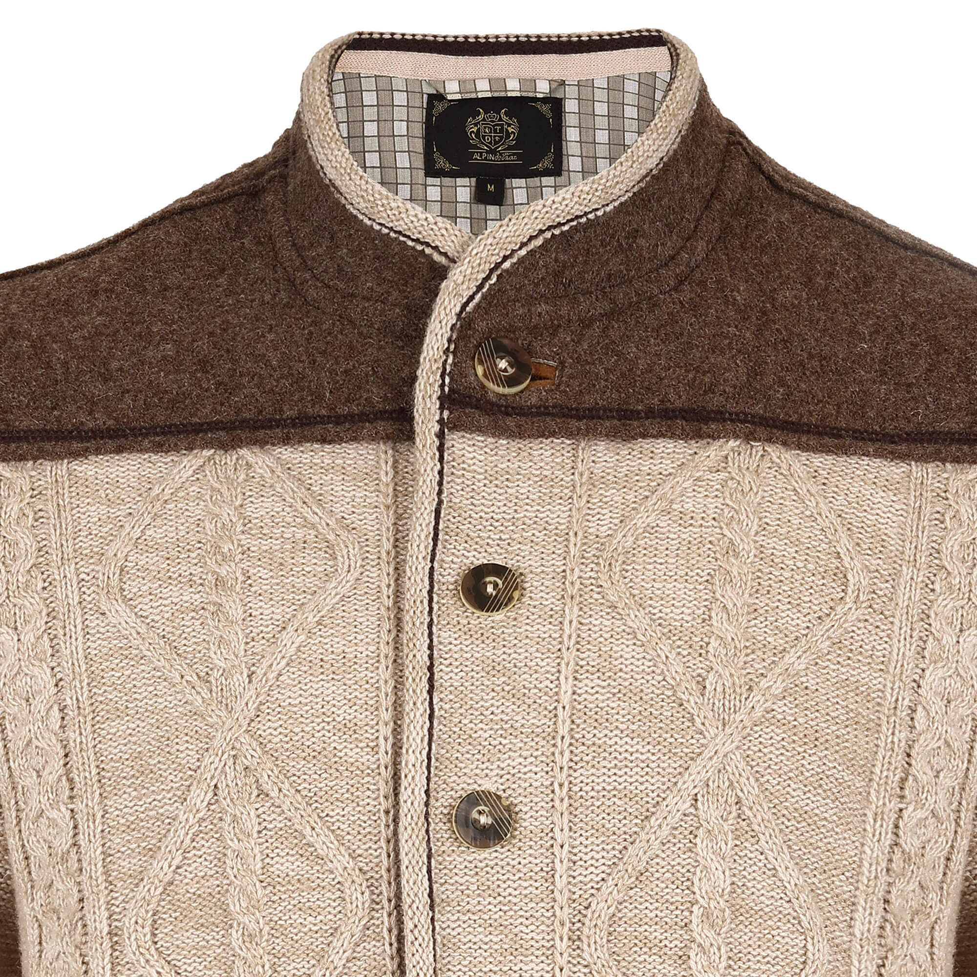 Herren Trachten Strickjacke „Johann“ mit Knopfleiste in der Farbe Braun / Beige