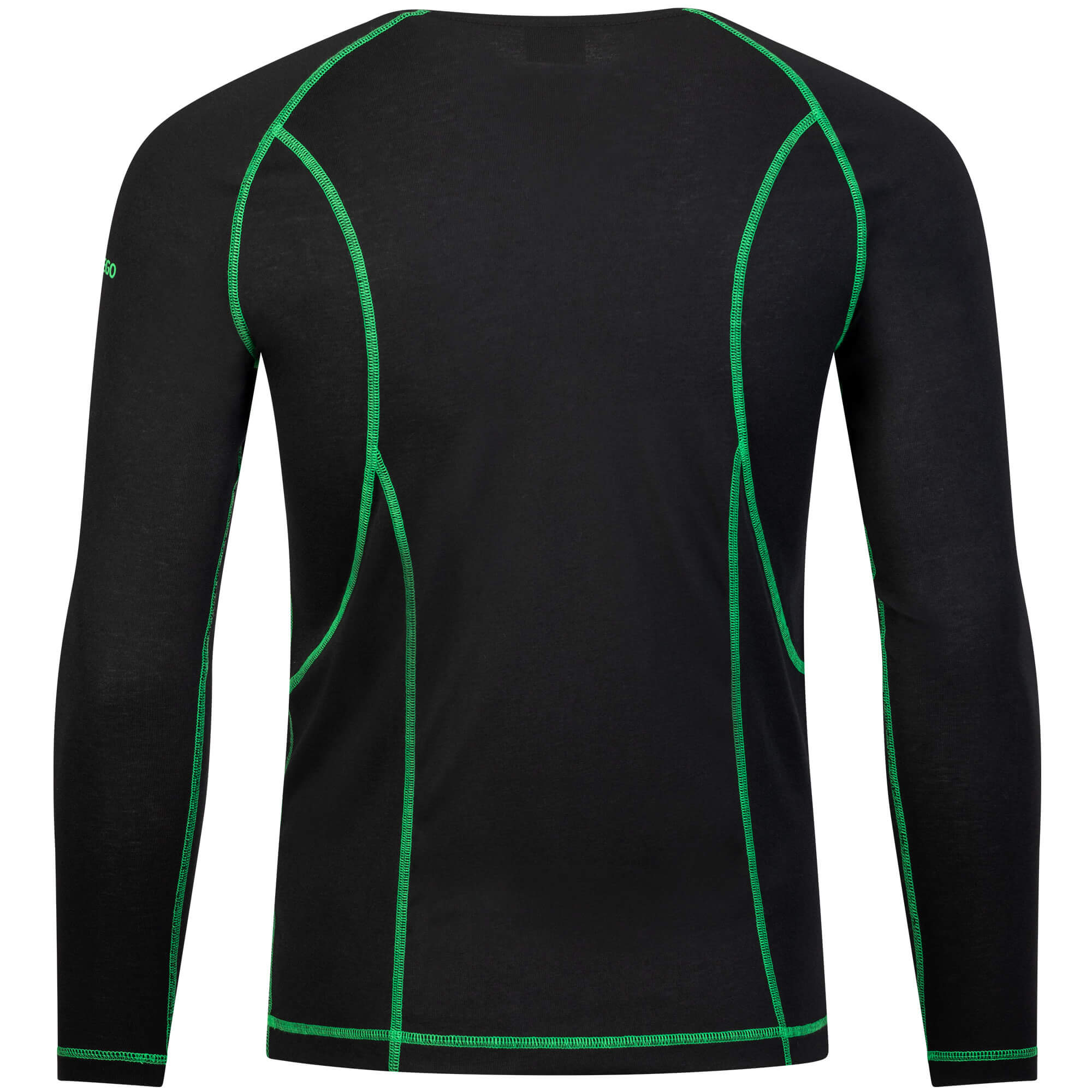 Der weiche, elastische Stoff ermöglicht maximale Bewegungsfreiheit, während die flachen Nähte Reibung auf der Haut verhindern und den Tragekomfort zusätzlich erhöhen. Optisch überzeugt das Shirt durch sein sportliches Design mit markanten grünen Kontrastnähten, die dem schwarzen Thermoshirt einen modernen Look verleihen.