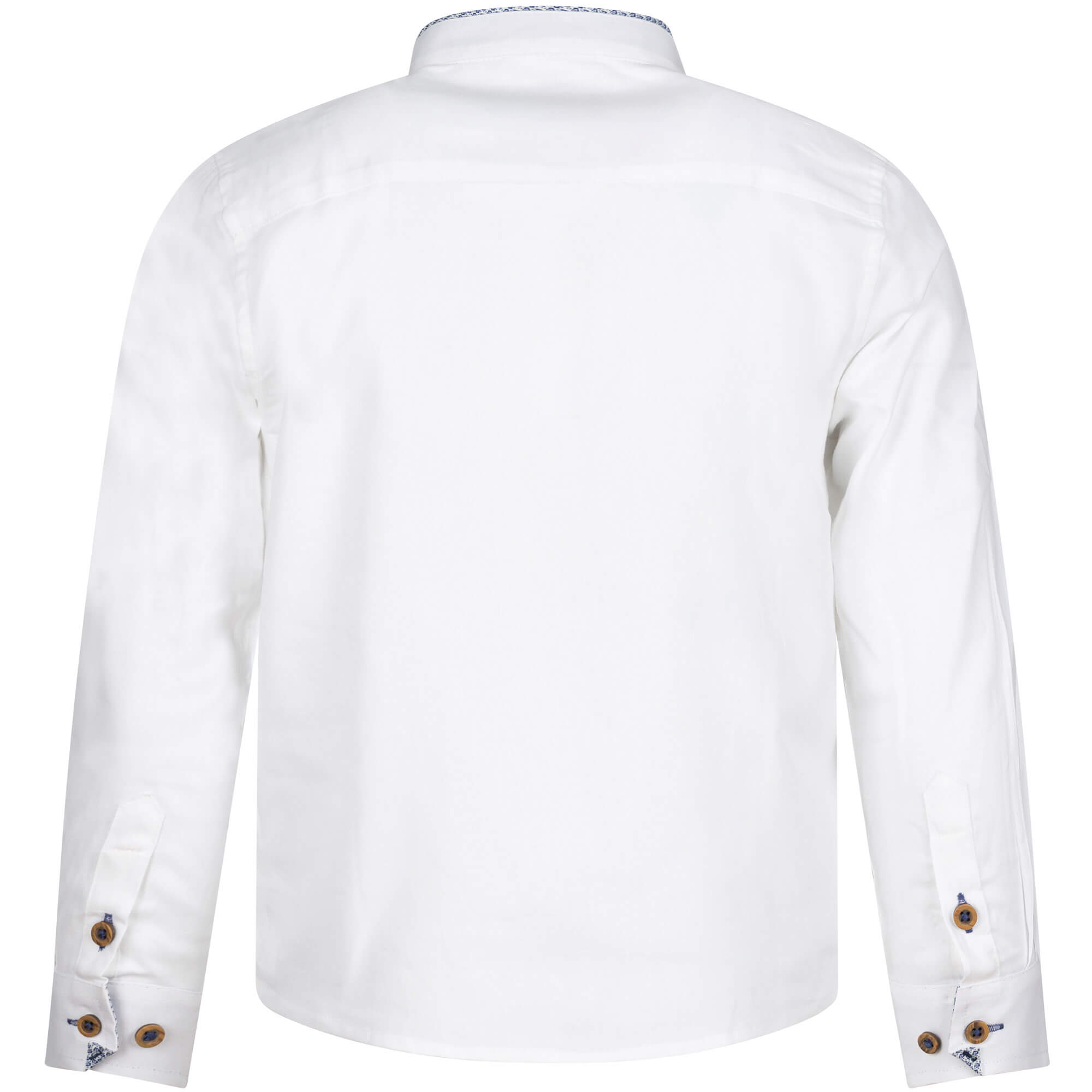 Kinder Hemd "Rafa", Langarm, Weiß, mit Biese in Blau