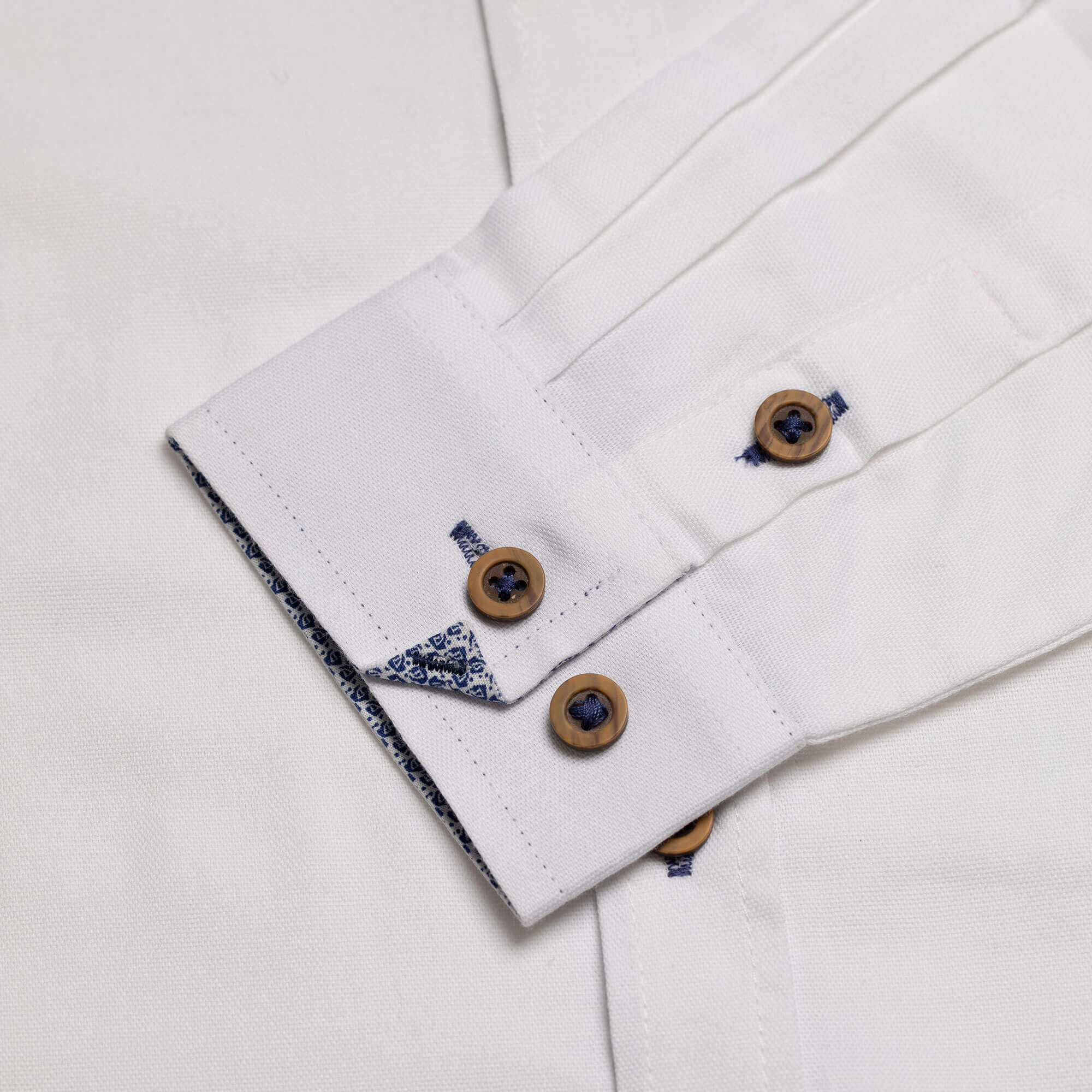 Weißes stilvolles Langarm Hemd aus 100 % Baumwolle, mit Biese in Blau